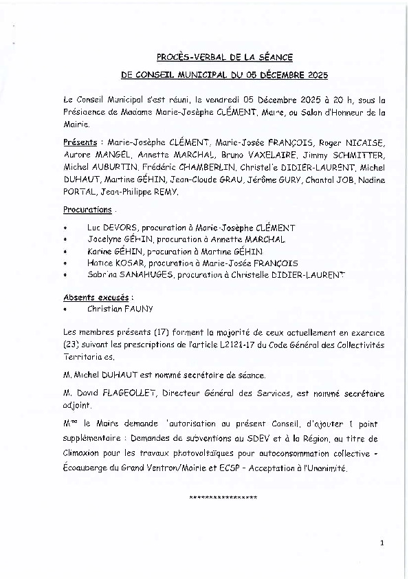 Compte-rendu de la séance du 5 décembre 2025