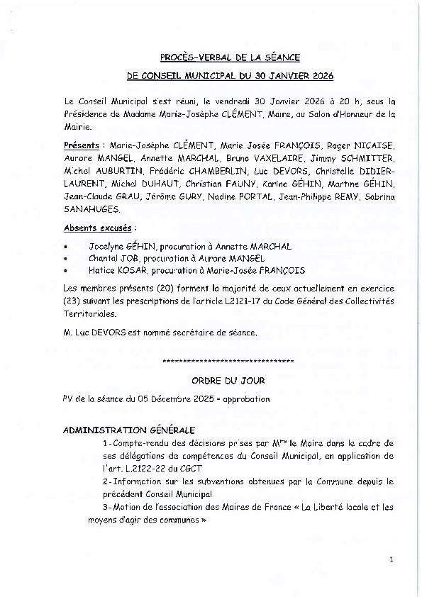Compte-rendus des conseils municipaux à partir du 31/01/2025